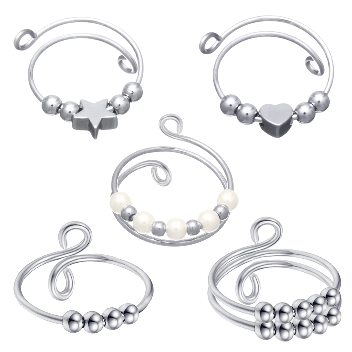 Rotating pearl anti-stress ring, silver (316L steel), set of 5