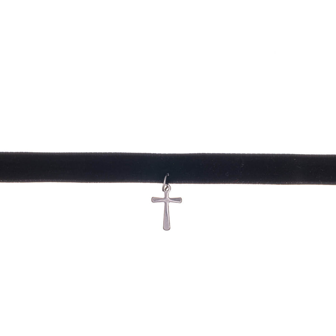 Velvet choker necklace cross pendant