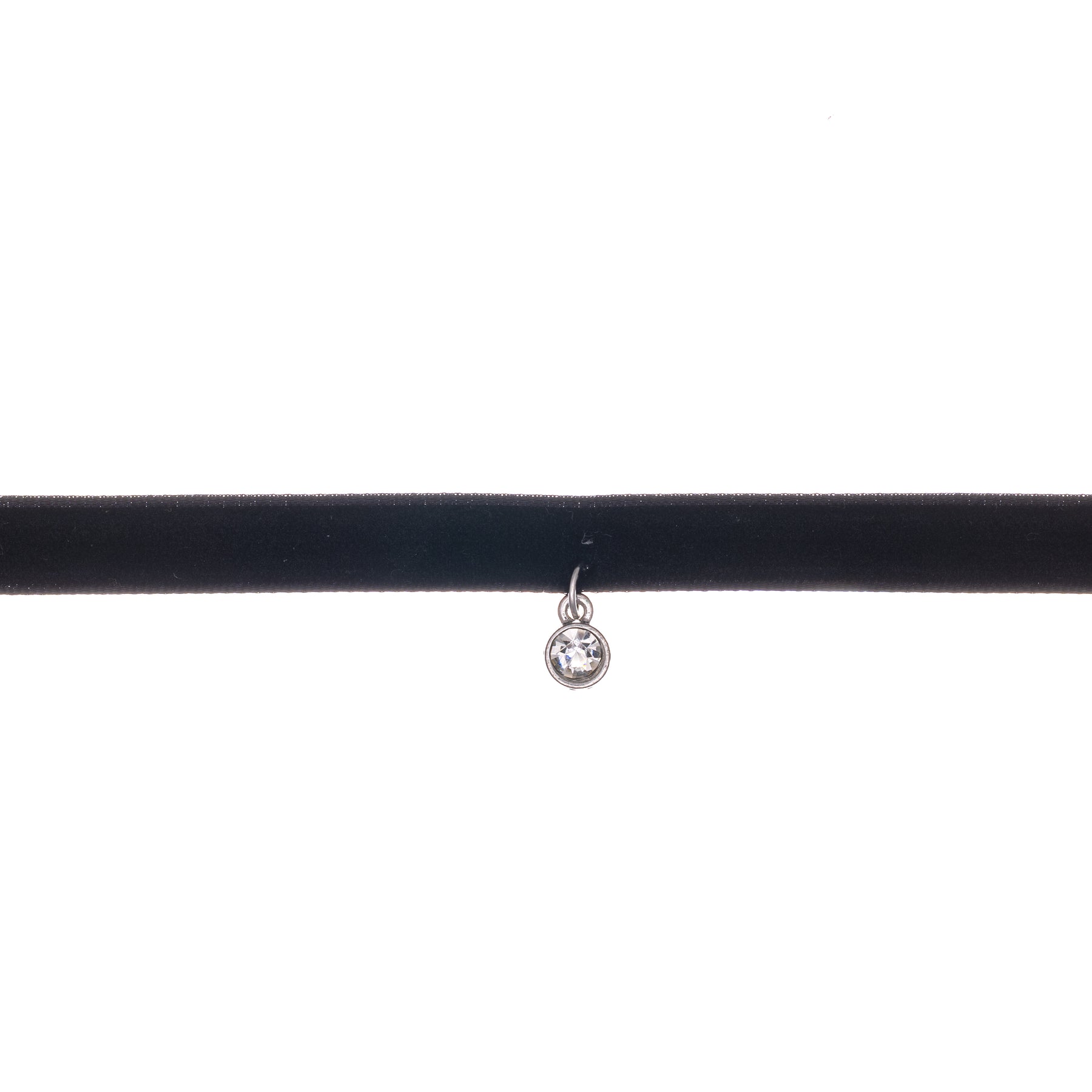 - Black velvet choker with a clear glass stone – a stylish and elegant detail.