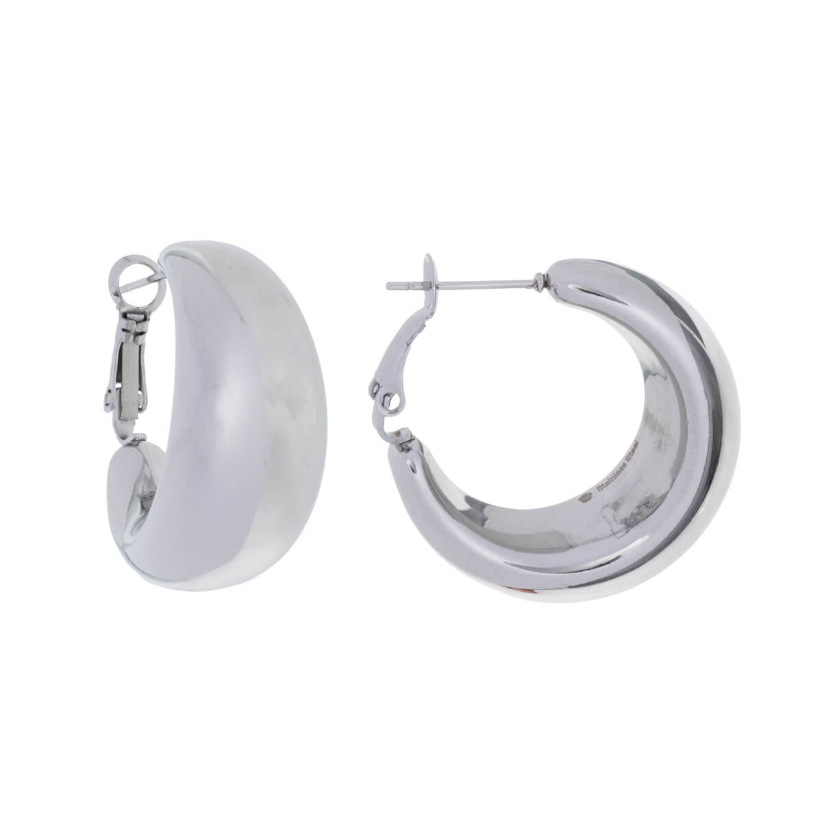 Steel wide earrings are stylish and durable. The hinged flap is easy to open and snap back onto the earring spike. The product is made entirely of steel.