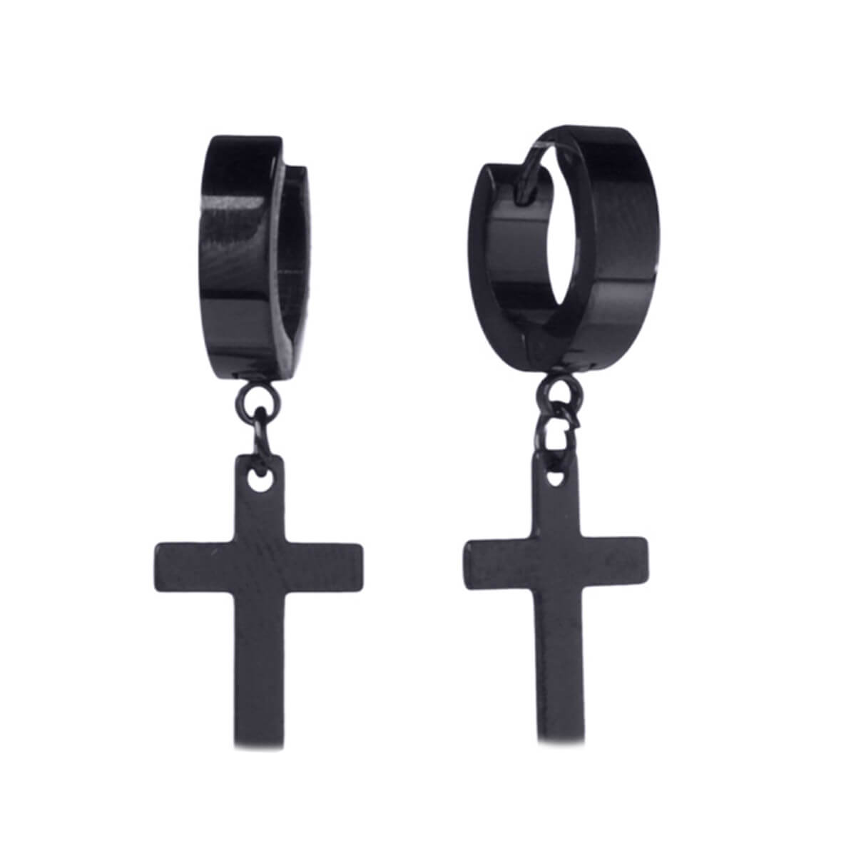 Stylish steel ring earring with hanging cross is popular for both men and women. The earring is made entirely of surgical steel (Steel 316L). The ring has a hinge mechanism, making it easy to open and snap shut. The earrings can be worn around the clock. The earring has no spikes to press behind the ear when sleeping.