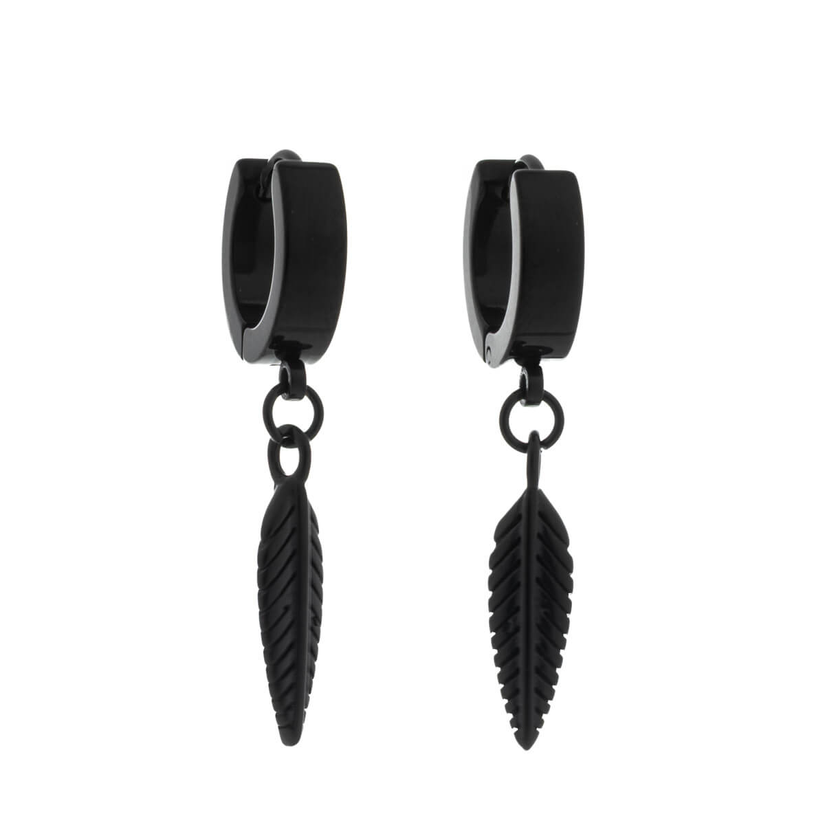 The earring is made entirely of surgical steel and finished with a durable PVD coating. Available in black, steel-colored, and gold-plated versions. The hinged ring fits comfortably on the ear, and the feather pendant gives the jewelry a personal yet understated look. A unisex model that is perfect for everyday wear or as part of a more striking ensemble.