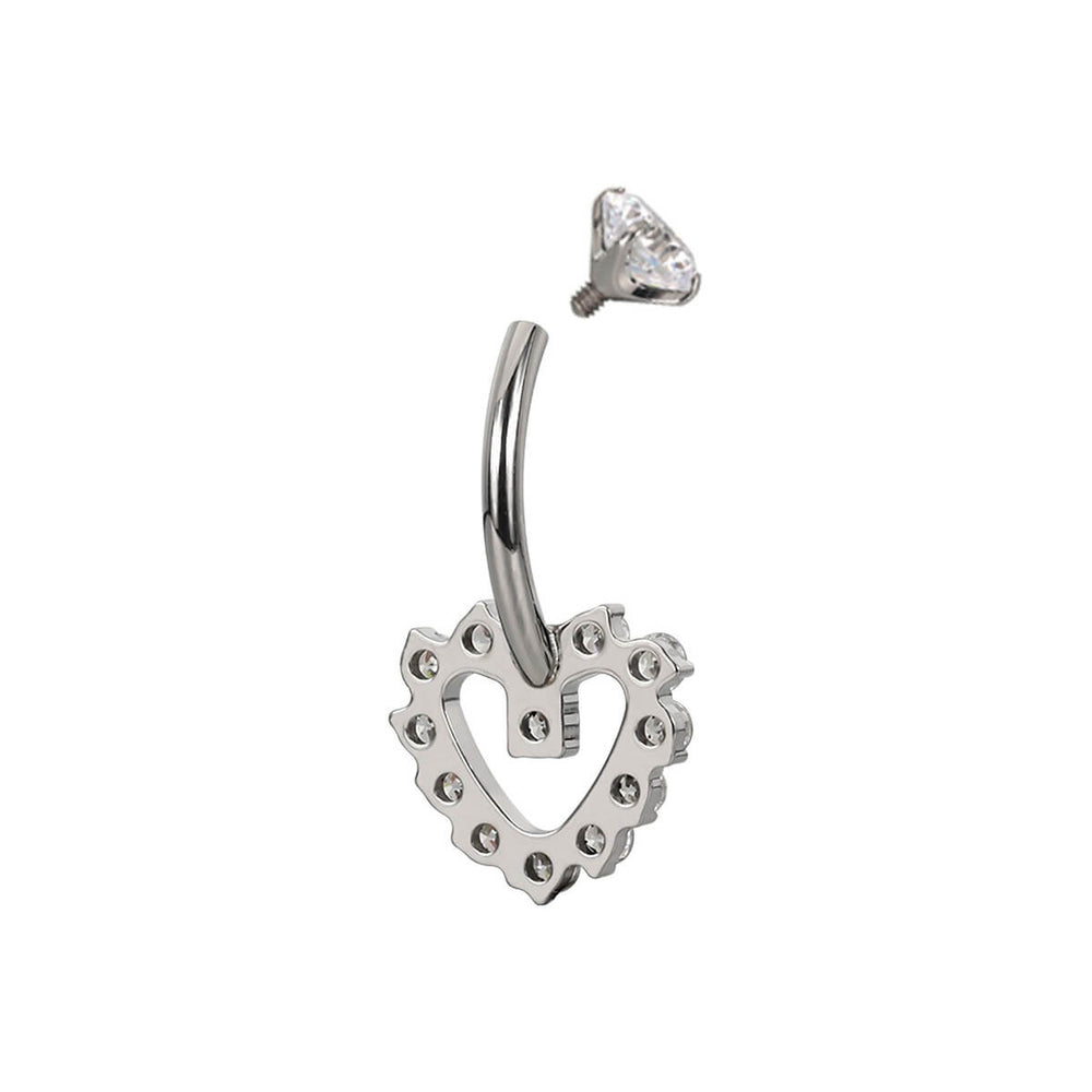 Zirconia heart titanium button earring 1.6mm (Titanium G23)