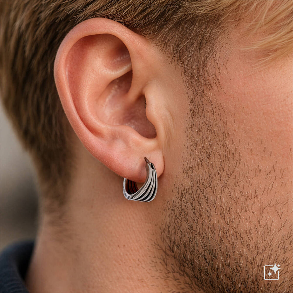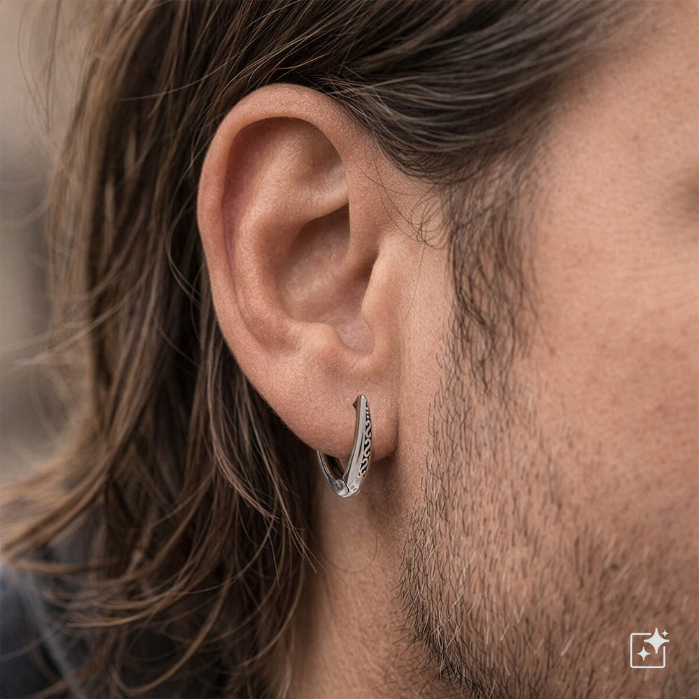 V-shaped earring 8mm – Patterned surgical steel (316L)