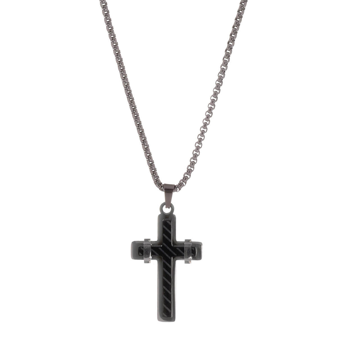 Decorated cross pendant steel necklace 55cm