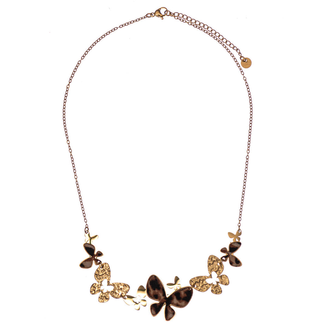 Leopard pattern butterfly necklace 42cm +5cm (Steel 316L)