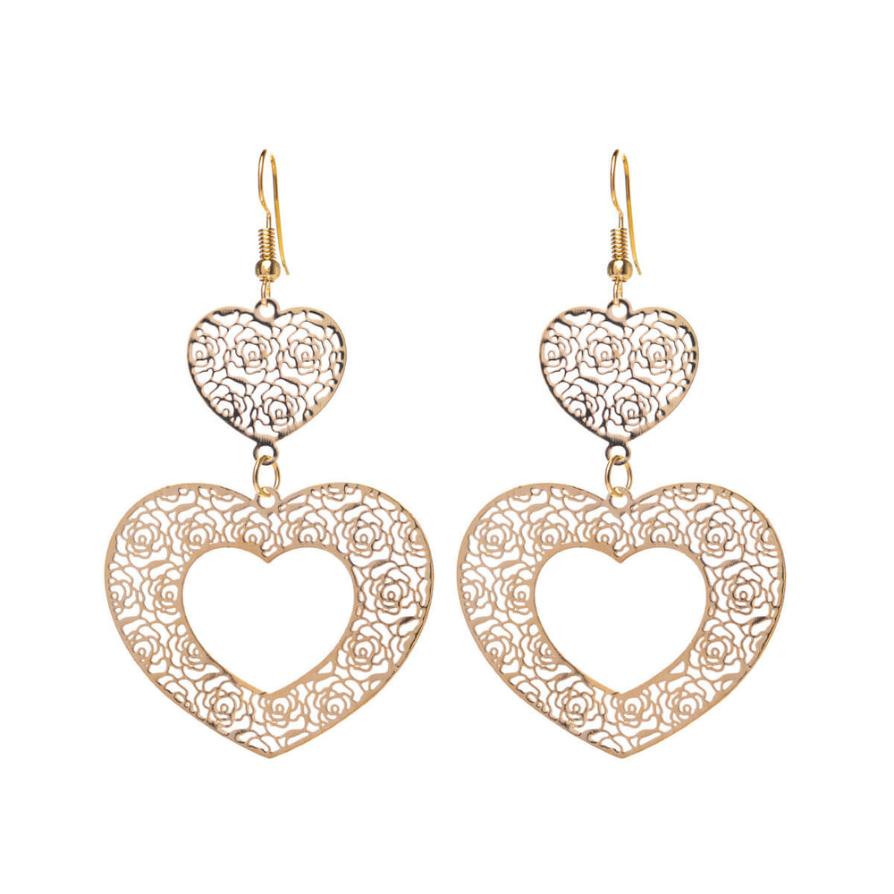 The shiny hanging earrings are beautifully detailed. Round earrings made of thin metal do not press much.