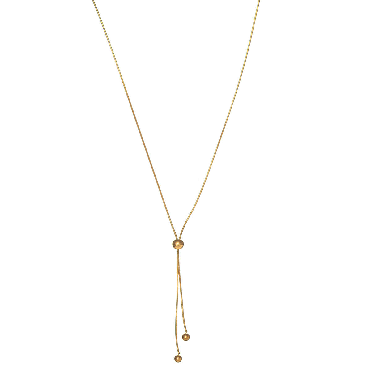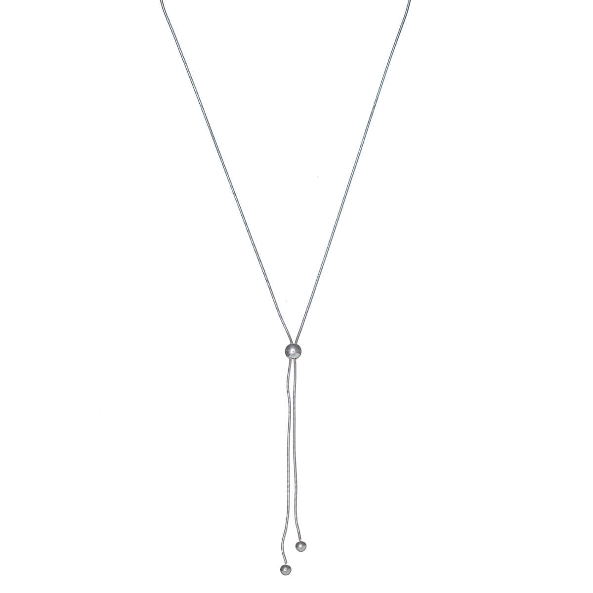 The elegant Y-shaped necklace is made of steel. The water-resistant necklace is elegant and simple. The thin chain runs through the large bead, so the length of the chain can be easily adjusted by pulling. The necklace is made entirely of surgical steel.