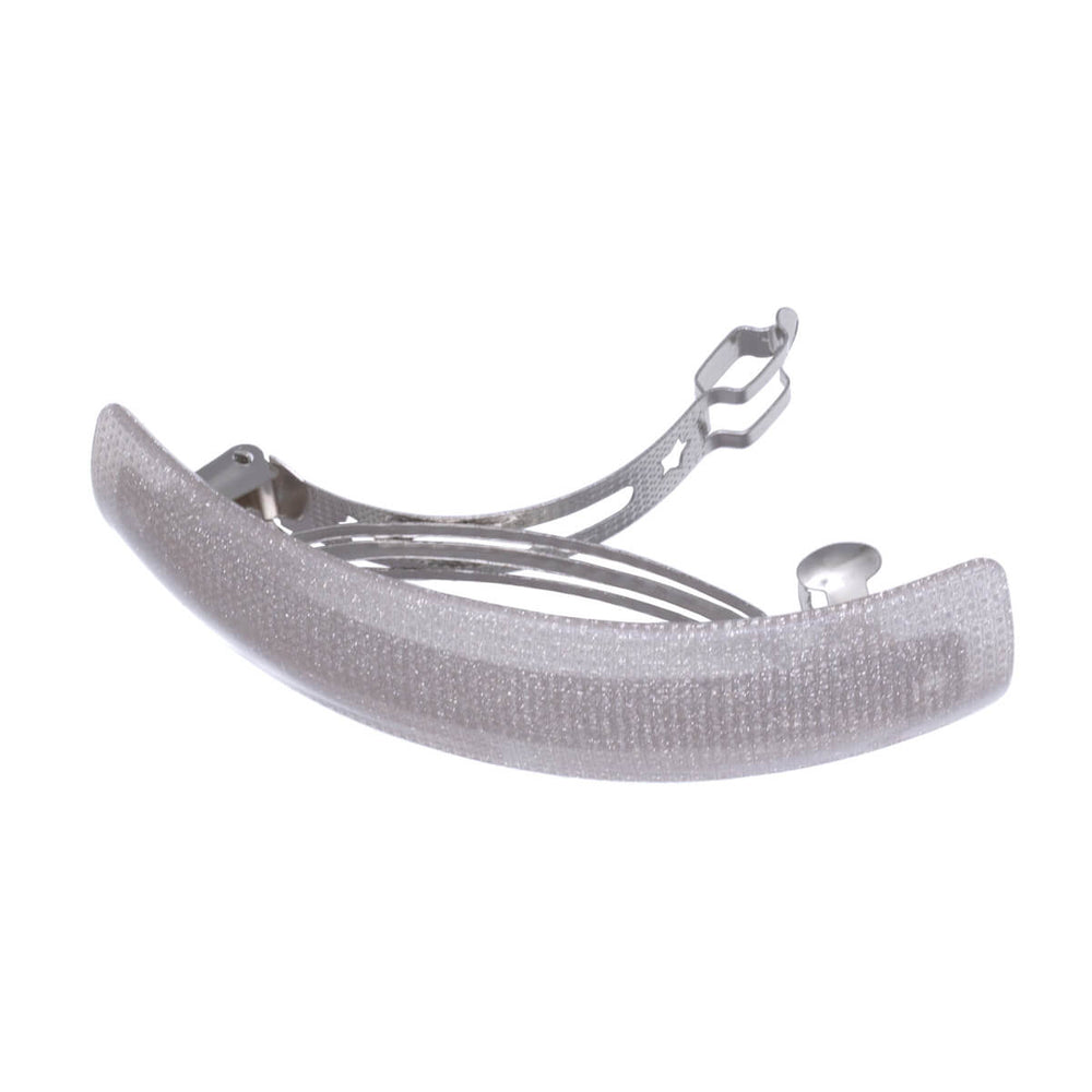 Hair clips make it easy to secure your hair so that it stays in place. This model features a plastic square decoration on top of a strong metal clip. The plastic surface has a beautiful sparkle.