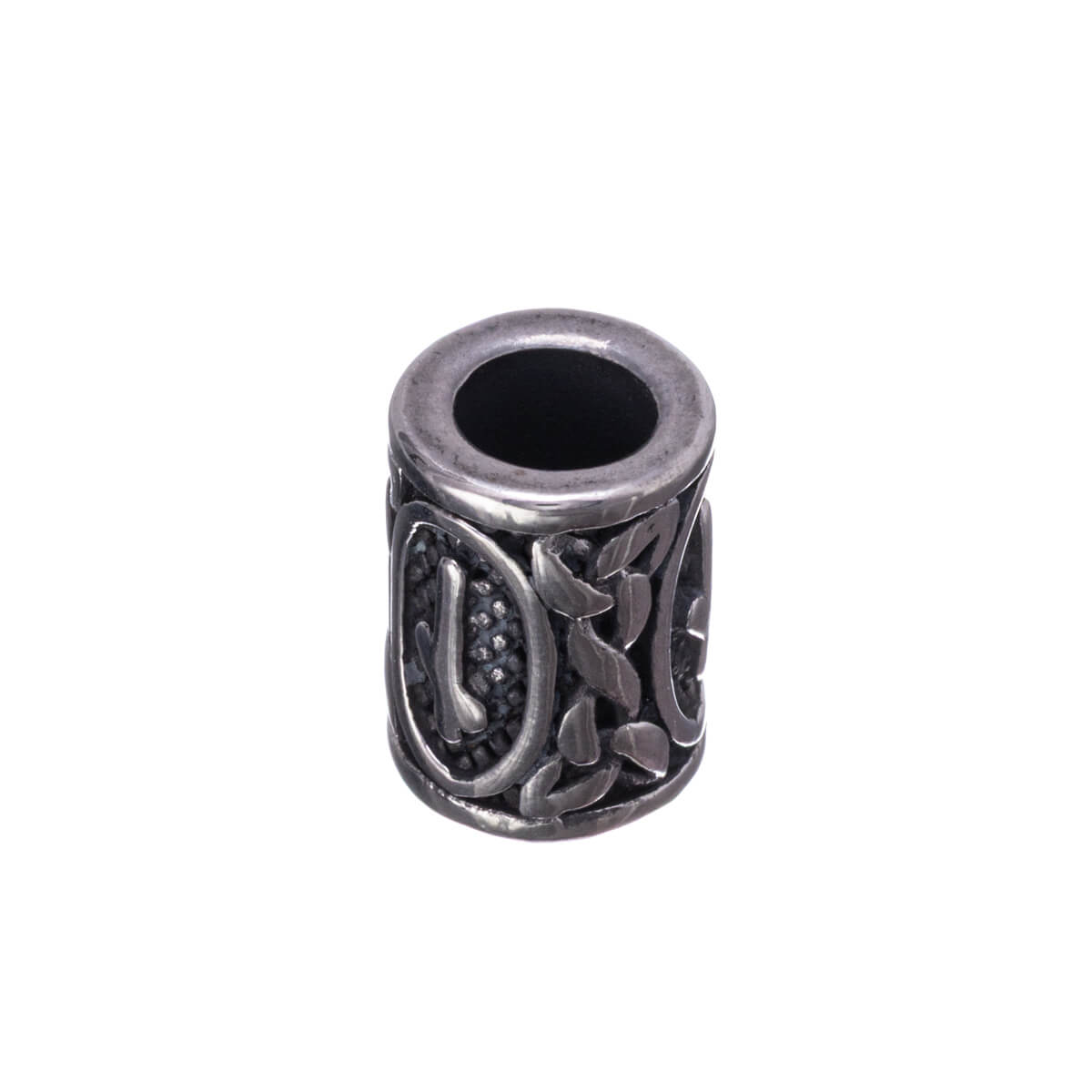 At the center of this beard ornament is a vertical rune symbol, which refers to willpower, self-confidence, and the ability to stand one's ground. In Viking thought, this shape symbolizes strength that does not require constant movement—it is stable, present, and reliable. The braided ornamentation surrounding the rune represents a connection to the heritage of ancestors and the threads of destiny: an individual's strength arises as part of a larger continuum. A subtle gold-colored detail highlights the core of the rune and refers to dignity, experience, and earned confidence.