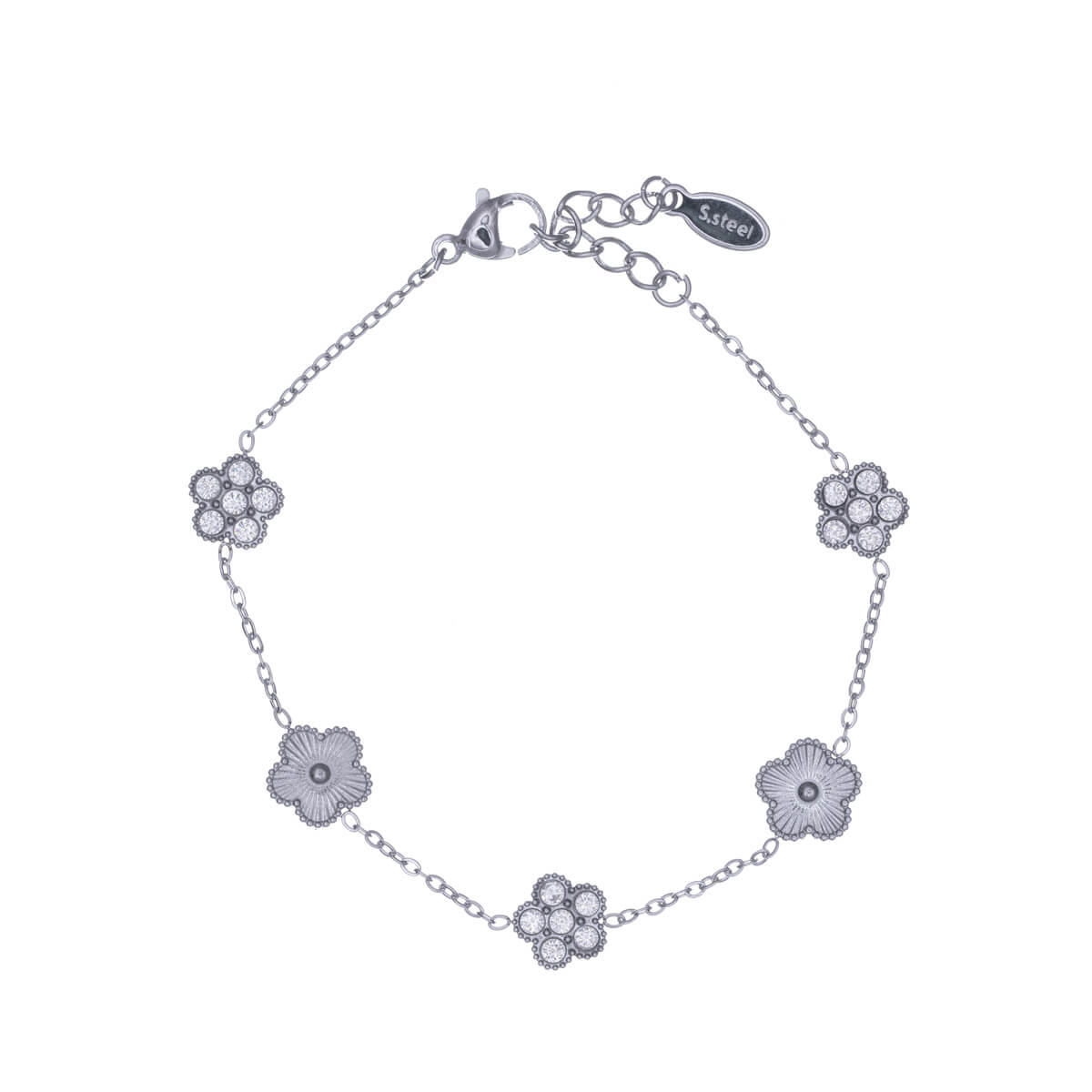 Steel bracelet with zirconia flower pattern (Steel 316L)