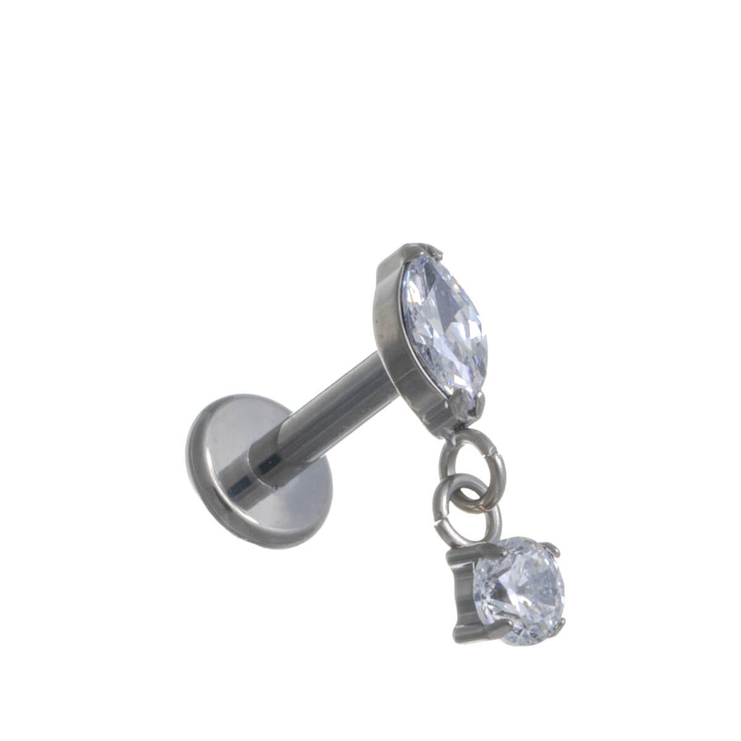Titanium bracelet with dangling zirconia labret 1.2mm (Titanium G23)